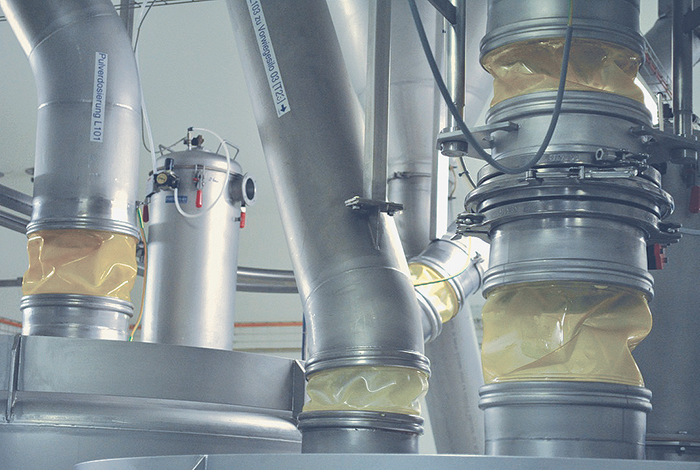HOCHDORF集团是瑞士最大的牛奶加工商之一,每年加工3亿公斤鲜奶。他们的Sulgen工厂经历了处理设备之间的软连接的问题,粉末经常泄漏。车间扬尘严重,卡箍边缘很锋利,导致软连接两端密封圈位置磨破。在更换过程中有伤害手指的风险。作为他们持续改进过程的一部分,HOCHDORF现在选择用BFM®软连接组件来优化他们处理系统,并使他们的转换更快和更安全的员工。